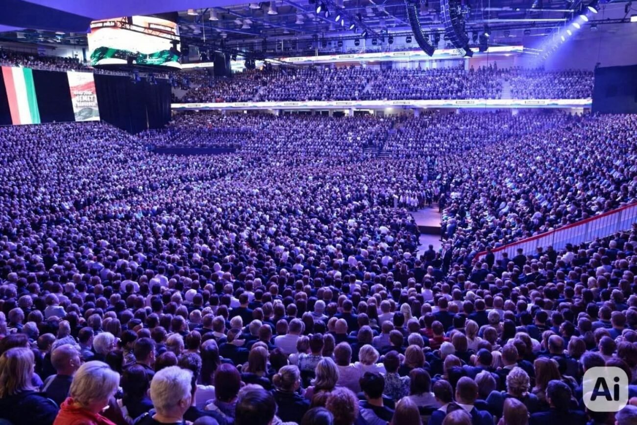 lyen képet posztolnak a fideszesek a csoportjaikban a dereceni Főnix Arénában megrendezett gyűlésről, de van egy kis gond a képpel