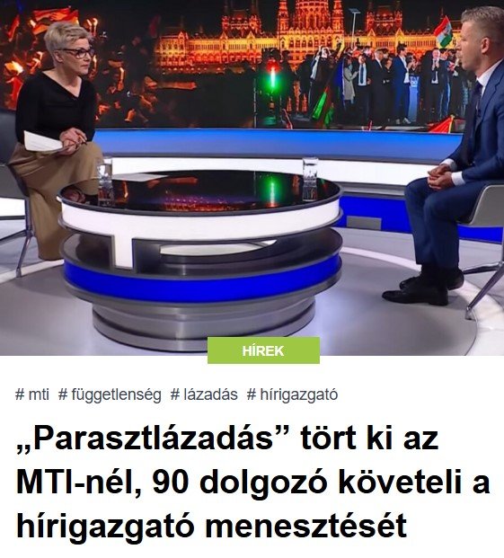 A szerdai állománygyűlést követően belső szervezkedés indult a Magyar Távirati Irodánál, amelyet maguk a munkatársak „parasztlázadásnak” neveznek – írta a hvg.hu. A nemzeti hírügynökség több mint kilencven dolgozója, köztük belföldi és külföldi tudósítók, valamint fotósok írták alá azt a közös levelet, amelyben a szakmai függetlenség helyreállítását követelik.