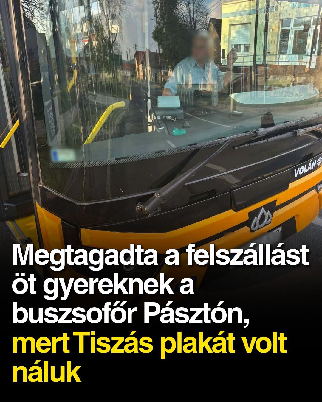 Komoly visszhangot váltott ki egy közösségi médiában terjedő beszámoló, amely szerint egy pásztói buszsofőr nem engedett felszállni öt kiskorú gyermeket egy menetrend szerinti járatra. Az eset állítólag azért történt, mert a gyerekeknél politikai tartalmú plakát volt.