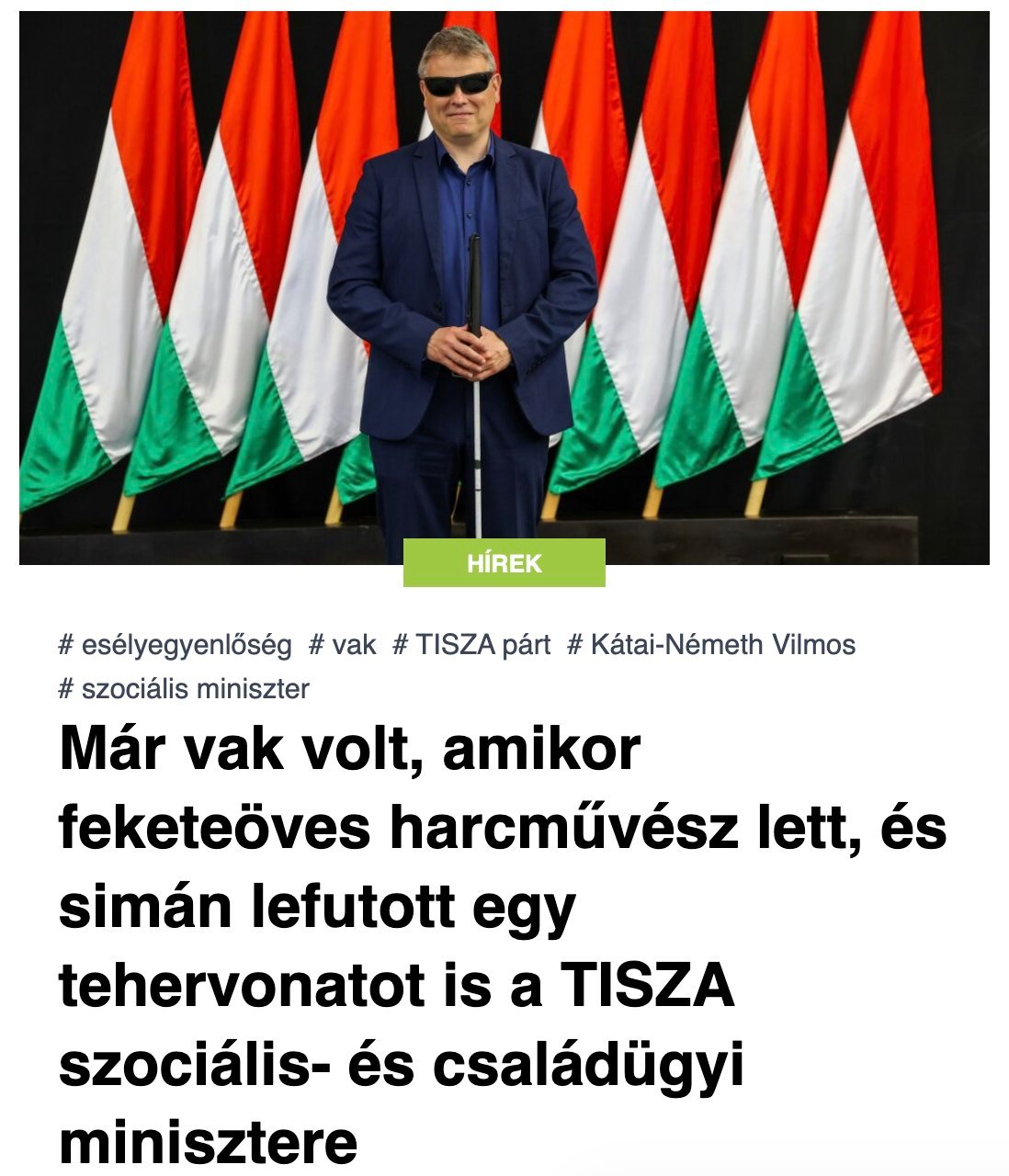 Magyar Péter bejelentette, hogy Kátai-Németh Vilmos ügyvédet, a Tisza Párt csepeli képviselőjét kéri fel a szociális és családügyi tárca vezetésére. A 16 évesen megvakult férfi nem mindennapi életutat járt be.